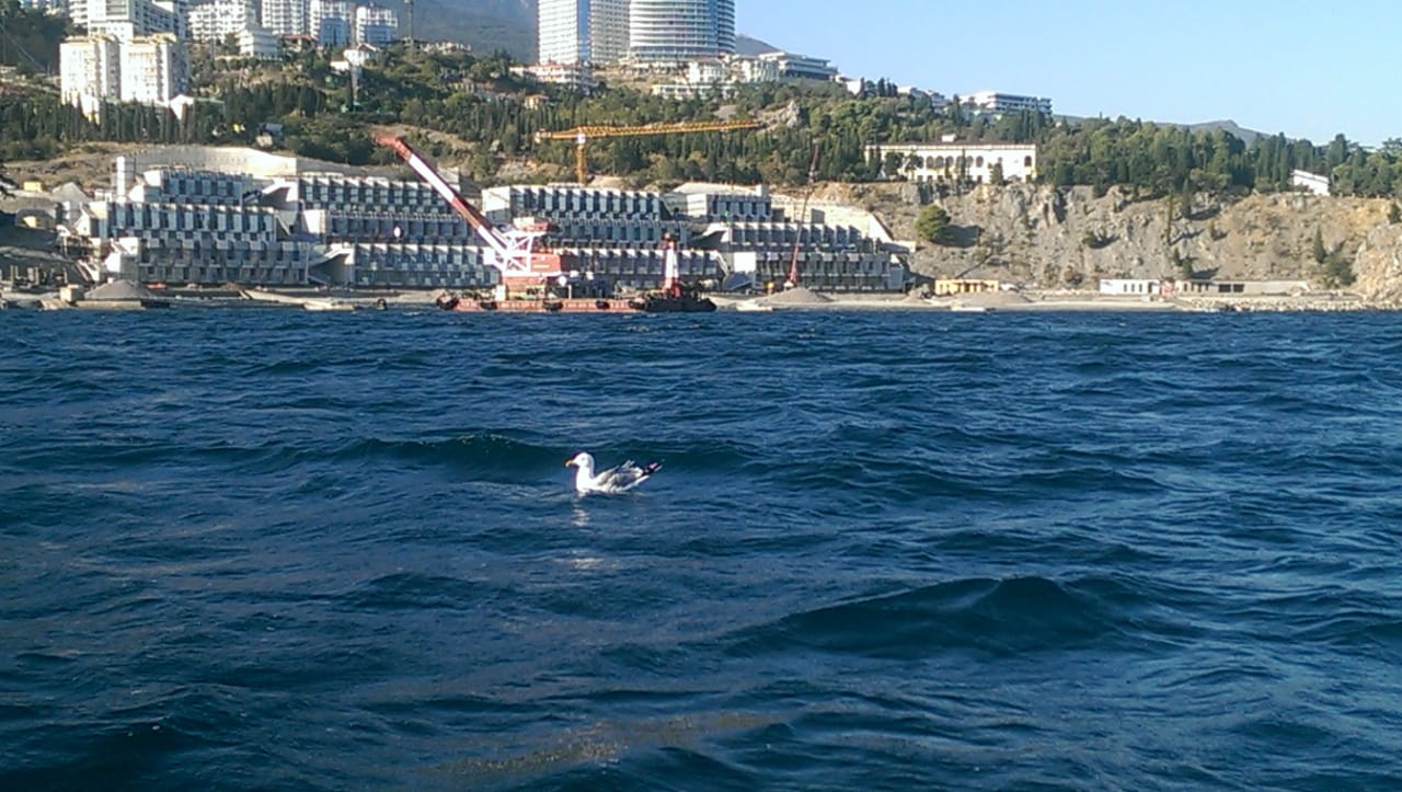 Отдыхала в Крыму в Гурзуфе. Плавала на катамаране и мой взгляд привлекла одиноко плывущая чайка.