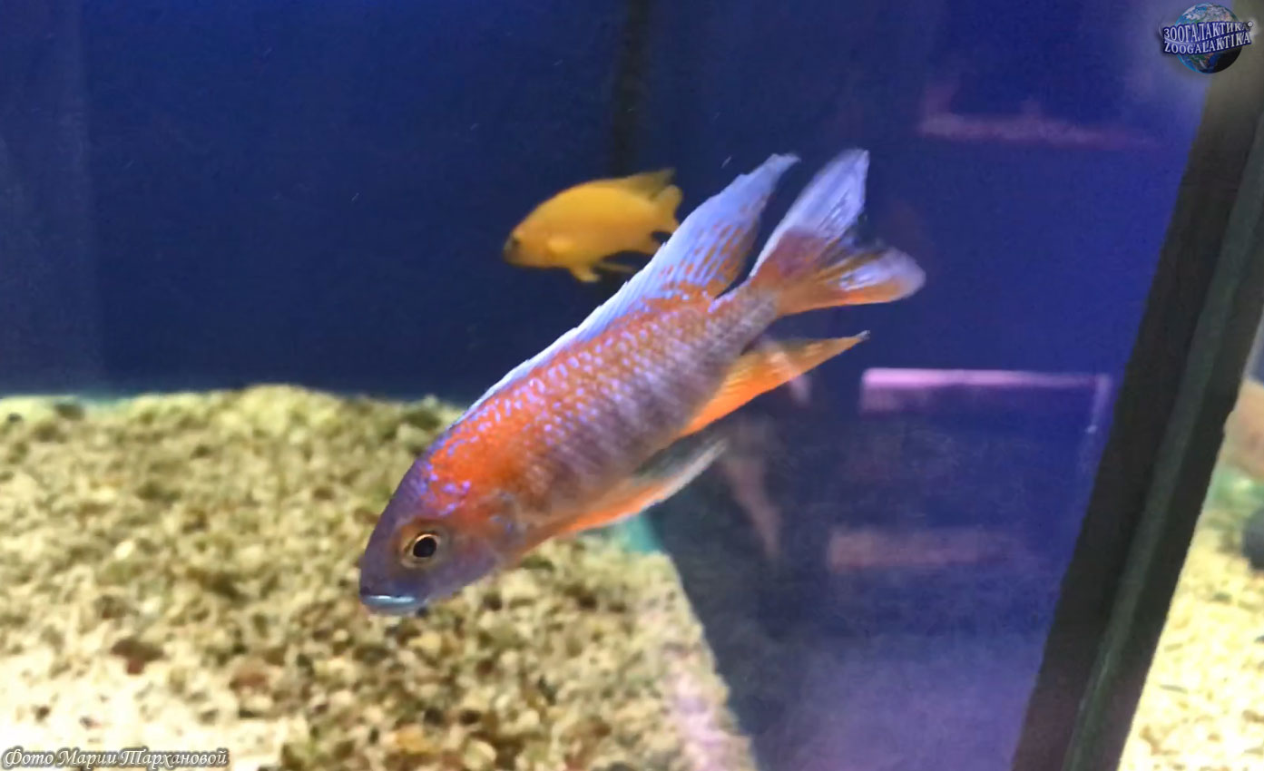 Глаз не оторвать от прогуливающегося по аквариуму красавца, он так стремительно рассекает водные толщи, что становится похожим на вспыхивающую в разных уголках резервуара грозовую молнию. Очень нарядная рыбка. И у неё есть собственное отношение к жизни. Например, и яркость, и даже оттенок цвета может поменяться в связи с переменой настроения. По форме она стройна, вытянута и нормально сплющена по бокам, спинка у аулонокары высокая, а голова крупная с очень красивой мордочкой. Длиной эта рыба вырастает в аквариуме до пятнадцати сантиметров, есть что разглядывать. У самца великолепные длинные плавники, и он так красиво гарцует, красуясь перед своими дамами, перед соседями по аквариуму и, конечно, перед хозяевами его дома, что равнодушных нет. Ни среди рыб, ни среди людей.