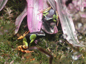 Семейство Мантеллы (Mantellidae) – эндемики Мадагаскара. К их особенностям относятся довольно грузное сложение, гладкая кожа, большие глаза и хорошо развитые задние ноги. Внешне мантеллы напоминают причудливо окрашенных маленьких бурых лягушек. В коже некоторых ярко окрашенных видов находятся ядовитые железы. Большинство мантелл обитают в листовой подстилке, среди корней деревьев. При необходимости они могут подняться на высоту около 40 см от почвы. Лишь один вид – древесная мантелла нередко встречается на деревьях и стеблях бамбука, забираясь на высоту до 4 м.