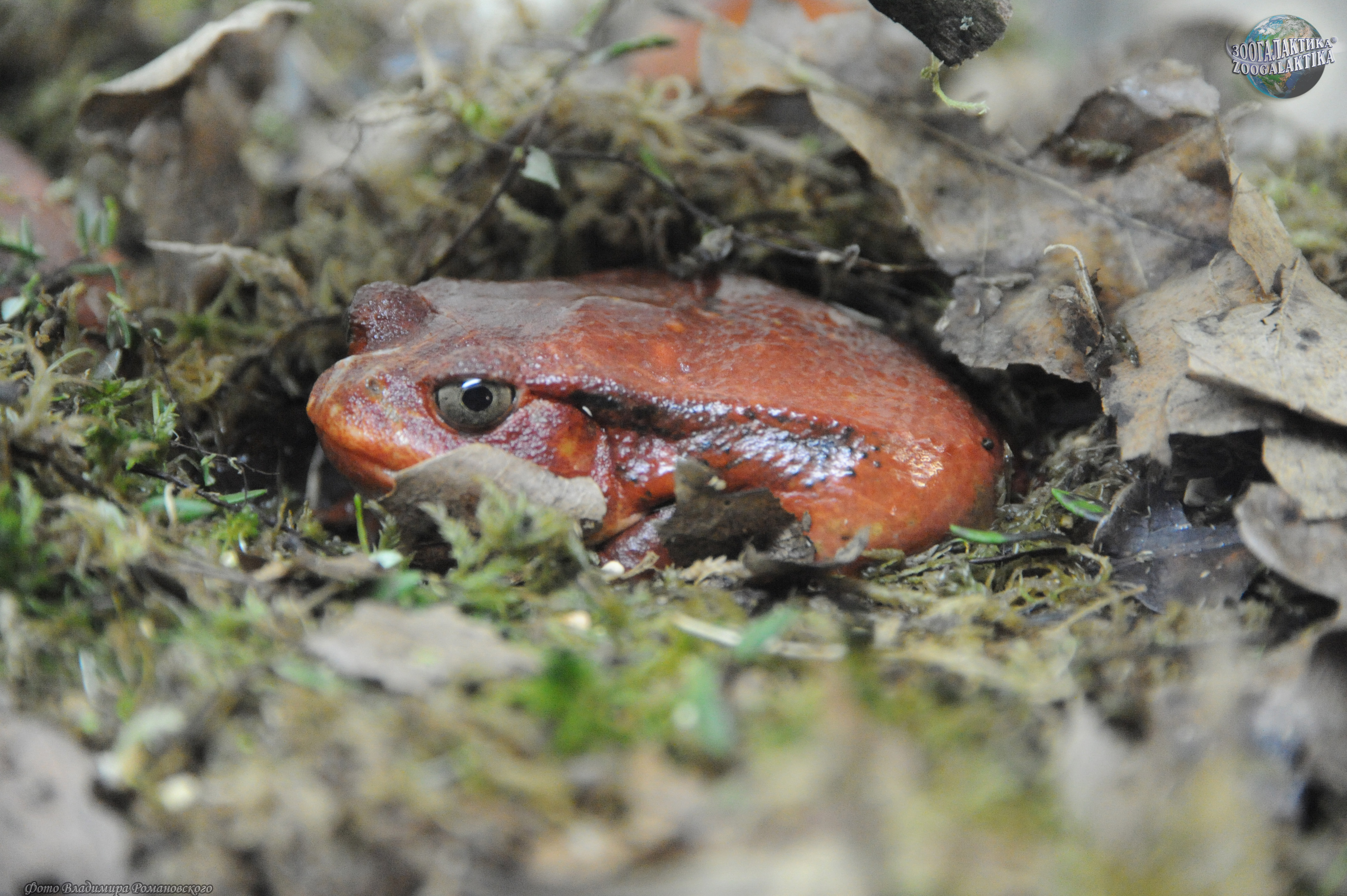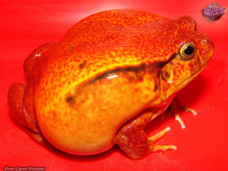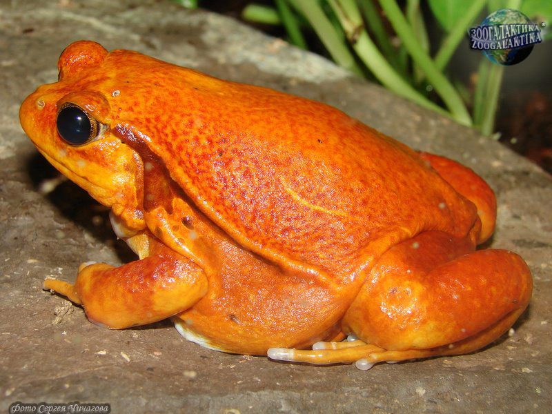 Лягушка-помидор, или винный узкорот окрашена в яркий оранжевый цвет. Обычно такая окраска действует как предупреждение потенциальным хищникам, что лягушки могут быть опасны. Однако на самом деле лягушка-помидор не ядовита. Ее кожными покровами выделяется секрет беловатого цвета, который она использует для защиты от хищников: эта субстанция действует как клей, для людей же эти амфибии не представляют никакой угрозы. Винный узкорот – это узкоареальный вид, обитающий на западе Мадагаскара, в тропических дождевых лесах, расположенной на высоте 600 м над уровнем моря, в природе он находится под угрозой исчезновения.