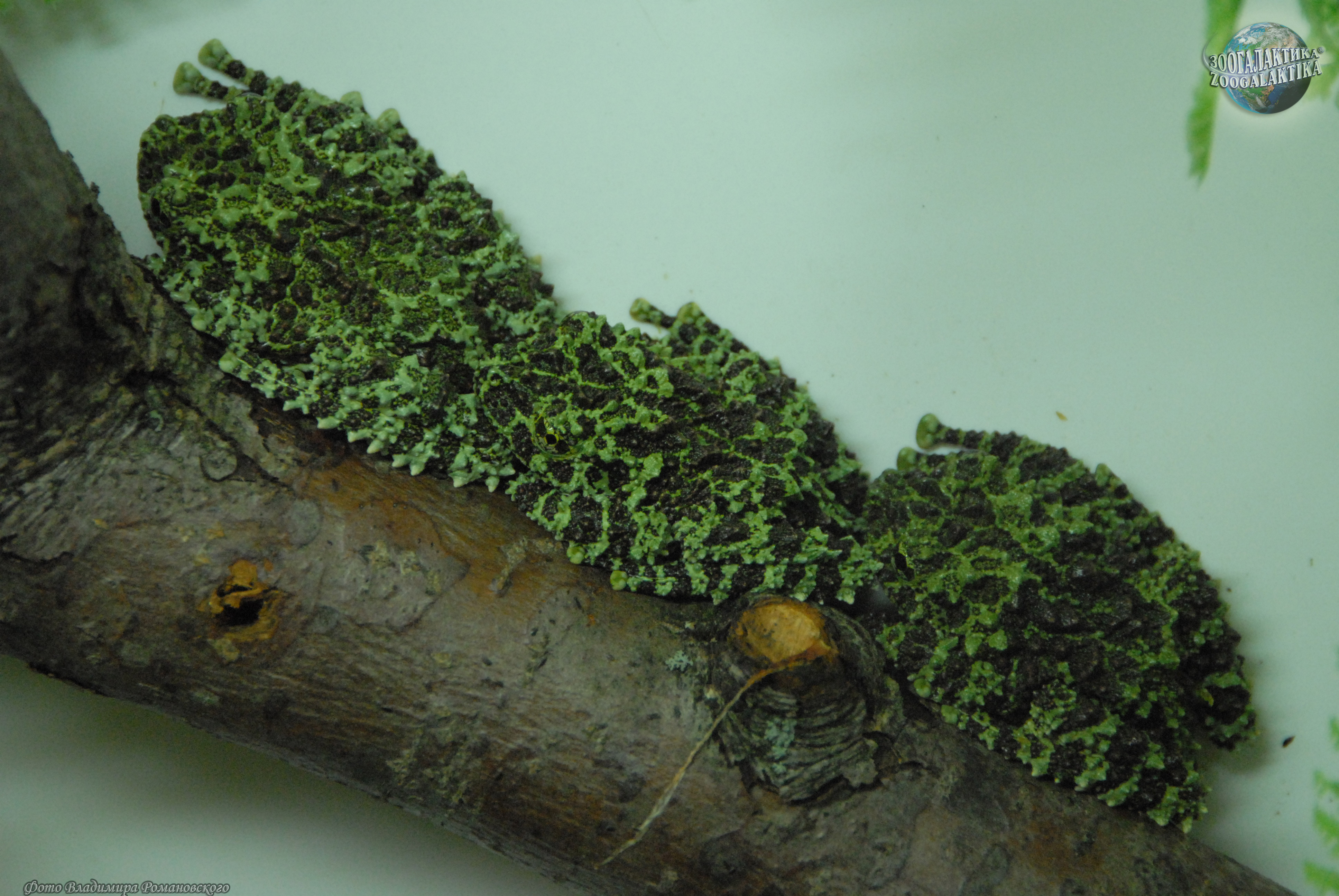 Зеленая моховая лягушка, или лишаистый бородавчатый веслоног является великолепным мастером маскировки. Комбинация зеленой окраски с черными точками и бугорками позволяет ей выглядеть похожей на кусок мха или лишайника (чем и объясняется их странно звучащее название). Неподвижно сидящих лягушек увидеть практически невозможно и неподготовленные террариумисты подолгу пытаются отыскать их, глядя прямо на спокойно сидящих веслоногов и не замечая их. Эти удивительные лягушки населяют карстовые зоны Северного Вьетнама, где заселяют затопленные пещеры и глубокие ниши по берегам горных ручьев, прячутся в дуплах деревьев. Лишаистые веслоноги селятся в небольших стоячих водоёмах, часто в пещерах или полуразрушенных строенияхи большую часть жизни проводят в воде. Икру эти веслоноги откладывают на суше, прикрепляя от 5 до 40 икринок к потолку пещерки или камням. Через 2 недели вылупляющиеся личинки падают в воду.