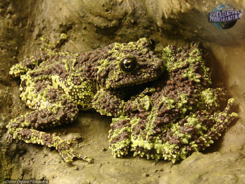 Зеленая моховая лягушка, или лишаистый бородавчатый веслоног Тheloderma corticale