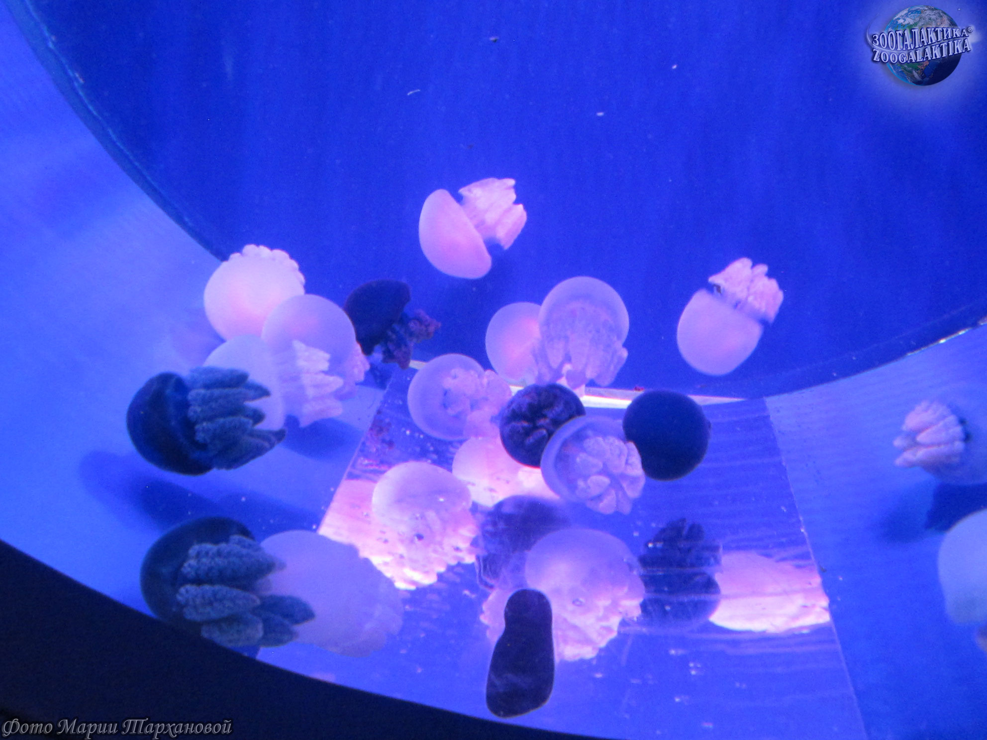 В аквариумах содержат в основном подвид этой медузы — золотую медузу, которая живёт в солоноватых водах озёр острова Палау.