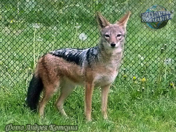Чепрачный шакал (Canis mesomelas) распространен в ЮАР и на восточном побережье Африки от Намибии до мыса Доброй Надежды. Это довольно крупное животное: длина его тела - 75-100 см, высота в холке - 50 см; вес - до 21 кг. Морда у чепрачных шакалов заостренная, похожая на лисью, уши большие, заостренные, хвост кустистый. От обыкновенного шакала чепрачный отличается черными и серебристо-серыми отметинами на спине, так называемому "чепраку".