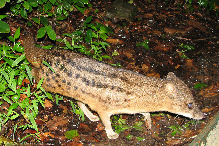 Ведёт исключительно наземный образ жизни, активна по ночам. Днём прячется в дуплистых деревьях, под упавшими стволами и среди скал. Питается мелкими позвоночными (млекопитающими, пресмыкающимися и земноводными), насекомыми и птичьими яйцами. Брачный период в августе-сентябре. Беременность длится около 82—89 дней, в помёте только один детёныш. Детёныши рождаются хорошо развитыми, с открытыми глазами, самостоятельными становятся через 10 недель, половой зрелости достигают в двухлетнем возрасте.