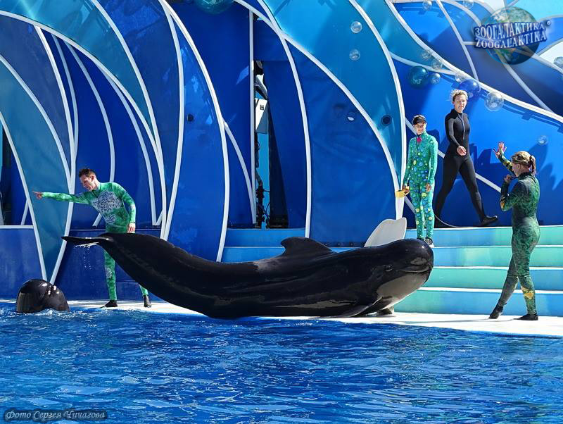 Тропическая гринда легко привыкает к человеку. Её способность принимать вертикальное положение с успехом используют в океанариумах: гринда постепенно привыкает все выше и выше высовываться из воды, чтобы достать высоко поднятый над водой корм. В результате дальнейшей дрессировки такой крупный дельфин, как гринда, начинает полностью выпрыгивать из воды и даже «взлетать» высоко в воздух.