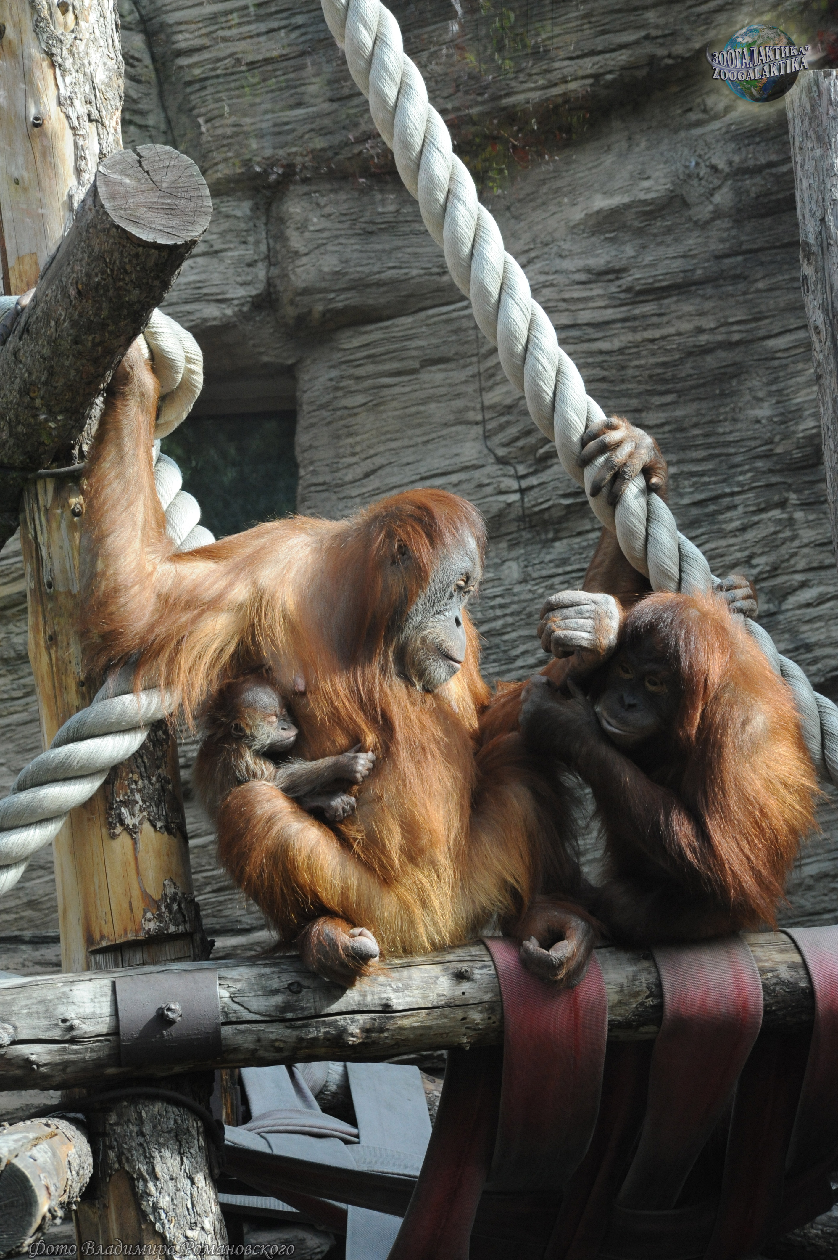 Самка суматранского орангутана со взрослой дочерью и маленьким сыном - фото 14