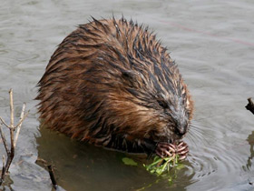 Длина тела бобра (Castor fiber) достигает 1 м, а масса 30 кг. У этого зверя есть пара анальных мускусных желез, маслянистый секрет которых известен под названием «бобровая струя» - бобр смазывает им мех, защищая его от намокания. Бобры селятся по берегам медленно текущих лесных рек и озер, с обильной водной и прибрежной растительностью, и устраивают там норы или хатки. Норы они роют там, где есть крутые берега, а хатки - на низких заболоченных берегах или на отмелях. Хатки - это большие кучи хвороста, скрепленного илом, высотой до 3 м и диаметром до 10 м, с обширной полостью внутри, выходы из которой ведут в воду. Зимой в хатках сохраняется положительная температура, и вода не замерзает. В водоемах с непостоянным уровнем воды, что при спаде могло бы привести к осушению выходов из нор или хаток, бобры сооружают плотины. Они устраивают их ниже поселения из срезанных стволов деревьев, веток и хвороста, скрепляемых глиной, илом, кусками сплавины и другим материалом. Иногда бобры устраивают еще и каналы, по которым сплавляют заготовленный древесный корм. Своими мощными резцами они не только легко перегрызают ветви, но и валят крупные деревья, подгрызая их у основания ствола (например, осину диаметром 5-7 см бобр может свалить за 2 минуты). У поваленного дерева эти грызуны отгрызают ветки и разделяют на части, затем часть веток поедают на месте, а другие сносят и сплавляют по воде к жилищу или к месту строительства плотины. Осенью они заготавливают древесный корм на зиму, а летом питаются в основном травянистыми растениями (кубышкой, кувшинкой, ирисом, тростником и др.).