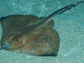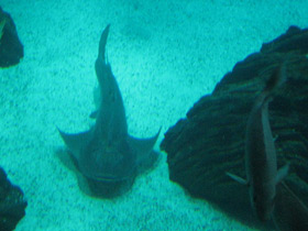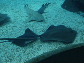 Скаты (Batoidea) — один из двух надотрядов Хрящевых рыб. Известно свыше 350 видов скатов, их размеры и окраска сильно варьируют: они могут быть от 15 сантиметров до 6-7 метров в длину, а вес самых крупных достигает 2,5 тонн. Среди скатов встречаются как одноцветные (серые, черные, бурые), так и очень ярко окрашенные - пятнистые, полосатые, узорчатые. Большинство видов ведет придонный образ жизни, в связи с чем их тело сильно уплощено, а жаберные отверстия переместились на нижнюю сторону тела, также, как и широкий рот, по обеим сторонам от которого находятся небольшие отверстия - брызгальца. Через них скат нагнетает воду в жаберные щели, чтобы дышать. Настоящие глаза находятся у скатов на верхней стороне тела. У разных видов их размер колеблется от крупного до мелкого, а у слепого электрического ската они скрыты под кожей. В связи особенностями образа жизни претерпели изменения и органы движения скатов: анальный плавник у них редуцировался, а грудные срослись с телом, превратившись в плоские «крылья». У некоторых скатов крылья-плавники сравнительно маленькие и не принимают участия в движении, главным толкателем у них, как и у других рыб, выступает мускулистый хвост. У других видов, наоборот, грудные плавники огромные, а хвост тонкий и слабый. Когда такая рыба плывет, она одновременно подымает и опускает плавники и будто бы летит в толще воды. Такой способ движения позволяет скатам развивать большую скорость и даже выпрыгивать из воды на несколько метров. Хвост у многих скатов узкий и вытянут в длину, а у скатов-хвостоколов у основания хвоста имеется острый длинный шип с ядом, представляющим опасность для человека.