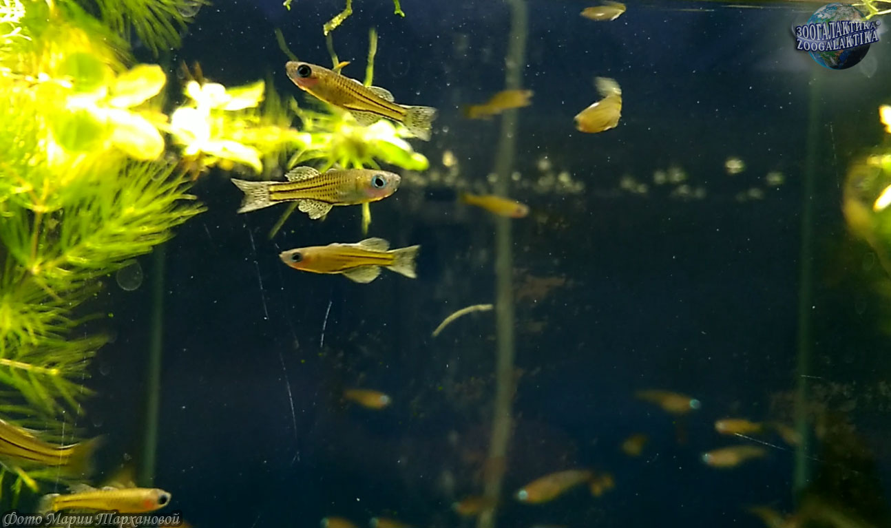 Эти рыбки исключительно интересны по биологии их размножения. Созревают они в 4-6 месяцев. Для разведения обычно используют 12-15-литровые аквариумы с плавающими на поверхности растениями. Вода должна быть мягкой, желательно торфированной. Икрометание обычно происходит после бурного ухаживания самца за самкой. Самец оплодотворяет икринки в период брачных объятий, во время которых самец закрывает тело самки своим большим анальным плавником.