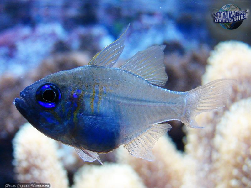 Синеглазый кардинал обитает в Индо-Тихоокеанском регионе: в Микронезии, Новой Каледонии, в Красном море, в водах вокруг островов Рюкю, Самоа, Тонга и Сейшельских островов. Тело этой небольшой 10-сантиметровой рыбки вытянутое, тонкое и почти прозрачное. Такая «прозрачность» компенсируется мелкими линиями и пятнышками голубого и желтого цветов. Большие черные глаза этой рыбки окружены кругами синего цвета - именно за эту особенность синеглазый кардинал и получил свое название.