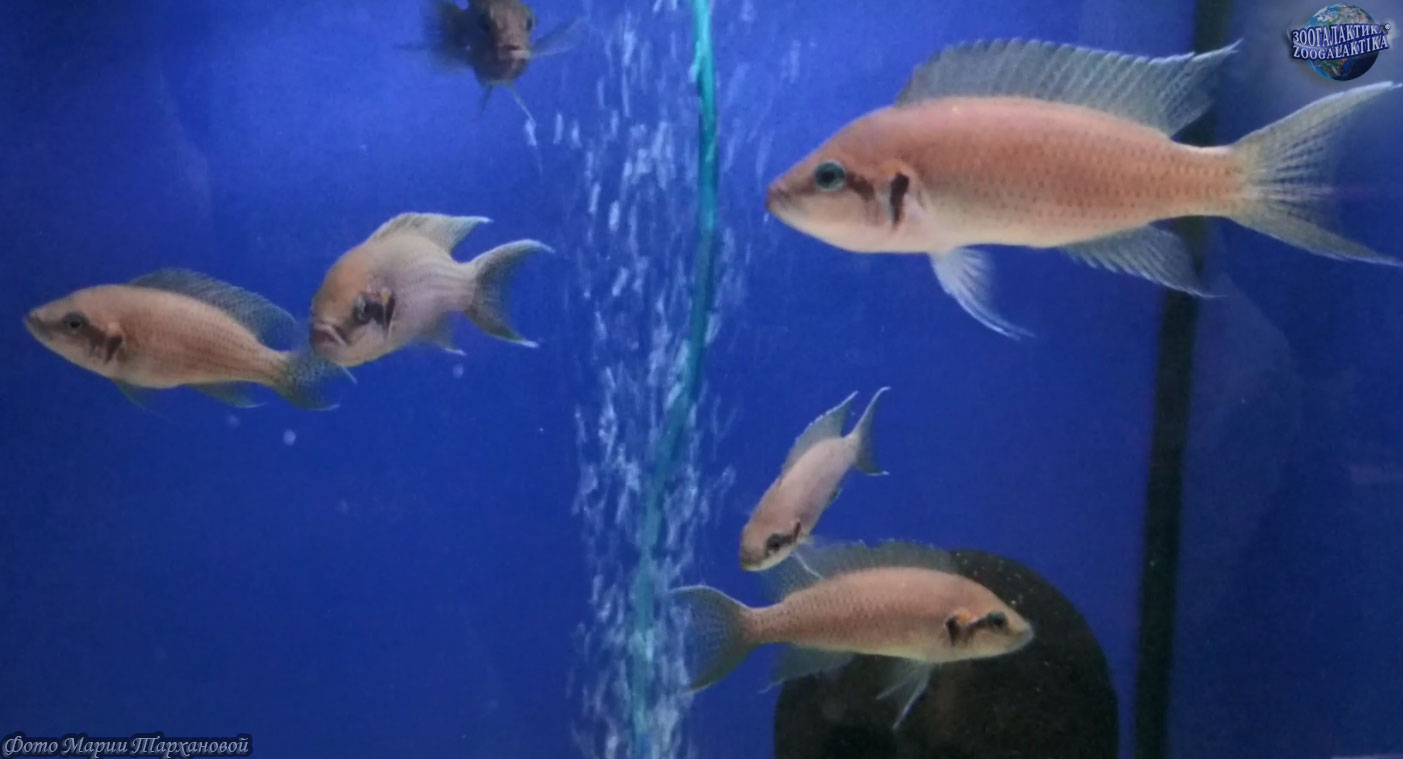 Эти цихлиды достигают половой зрелости в возрасте 8—10 месяцев. Самец нерестится с одной или несколькими самками. Икру самки чаще откладывают с внутренней стороны субстрата. Нерест у них порционный, за один раз самка вымётывает до 30 икринок, а в общем ее плодовитость достигает 200 икринок. Инкубационный период длится около 3 суток. Личинки превращаются в мальков и начинают самостоятельно питаться через 6-9 суток при температуре +25°С. Стартовый корм — мелкий планктон: коловратки, науплии и циклопы. Родители ухаживают за потомством долго, так что в аквариуме иногда могут находиться мальки трёх генераций. Пара рыб охраняет территорию в радиусе около 25 см вокруг укрытия с икрой. Молодь, подросшая до 3—5 см, держится на родительской территории или около её границ и выполняет функции помощников по охране и уходу за территорией, проявляет покорность по отношению к родителям и доминантным особям семьи, но агрессивно нападает на посторонних. У такой молоди ниже энергетические расходы и замедлен темп роста. Нередки случаи охраны взрослыми особями чужих мальков своего же вида. Родители заботятся о своем потомстве две недели, а затем вновь готовы к нересту, и тогда или их, или личинок следует отсадить. Продолжительность жизни рыб составляет 8-10 лет.