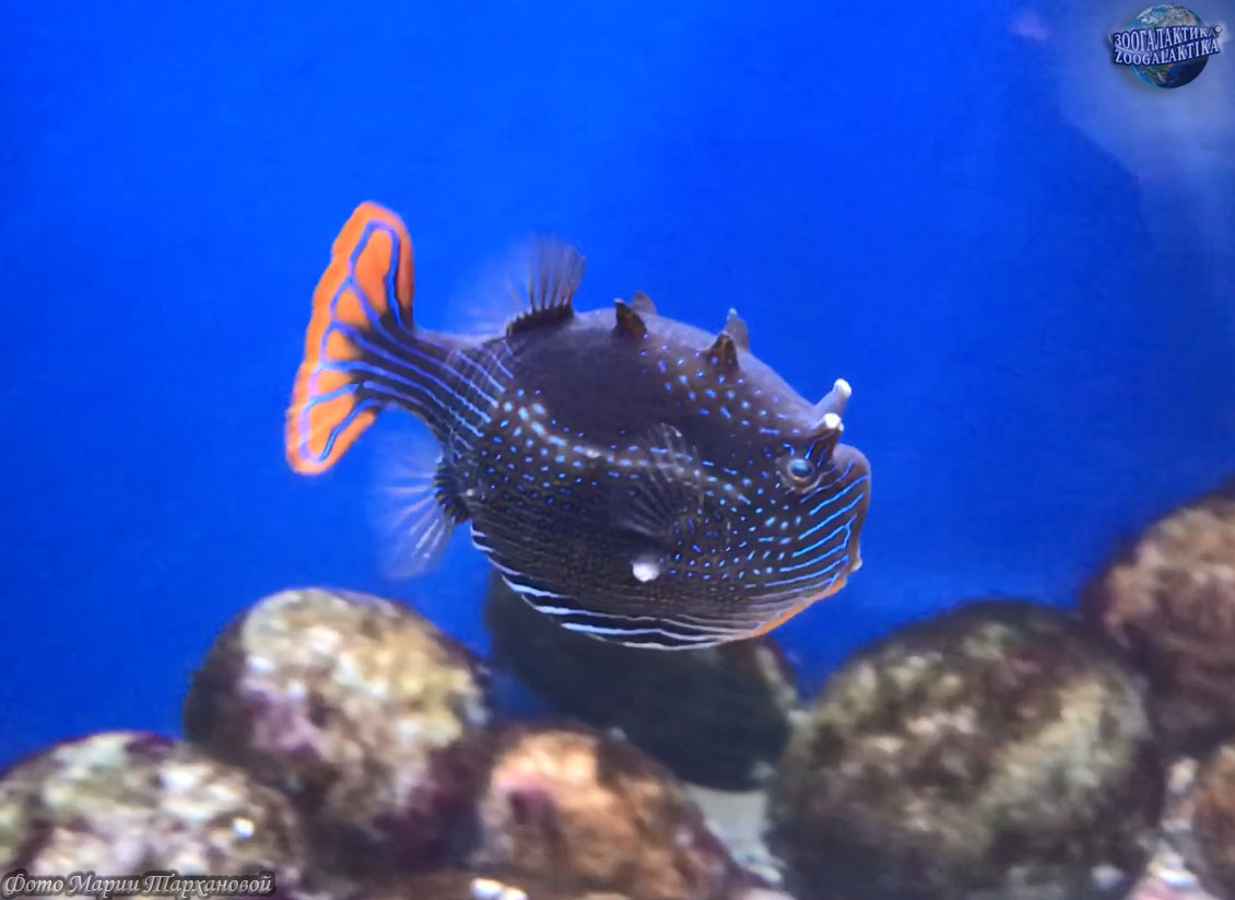 Украшенный кузовок-акарана распространен в восточной части Индийского океана. Длина тела этой удивительной рыбки достигает 15 см.
