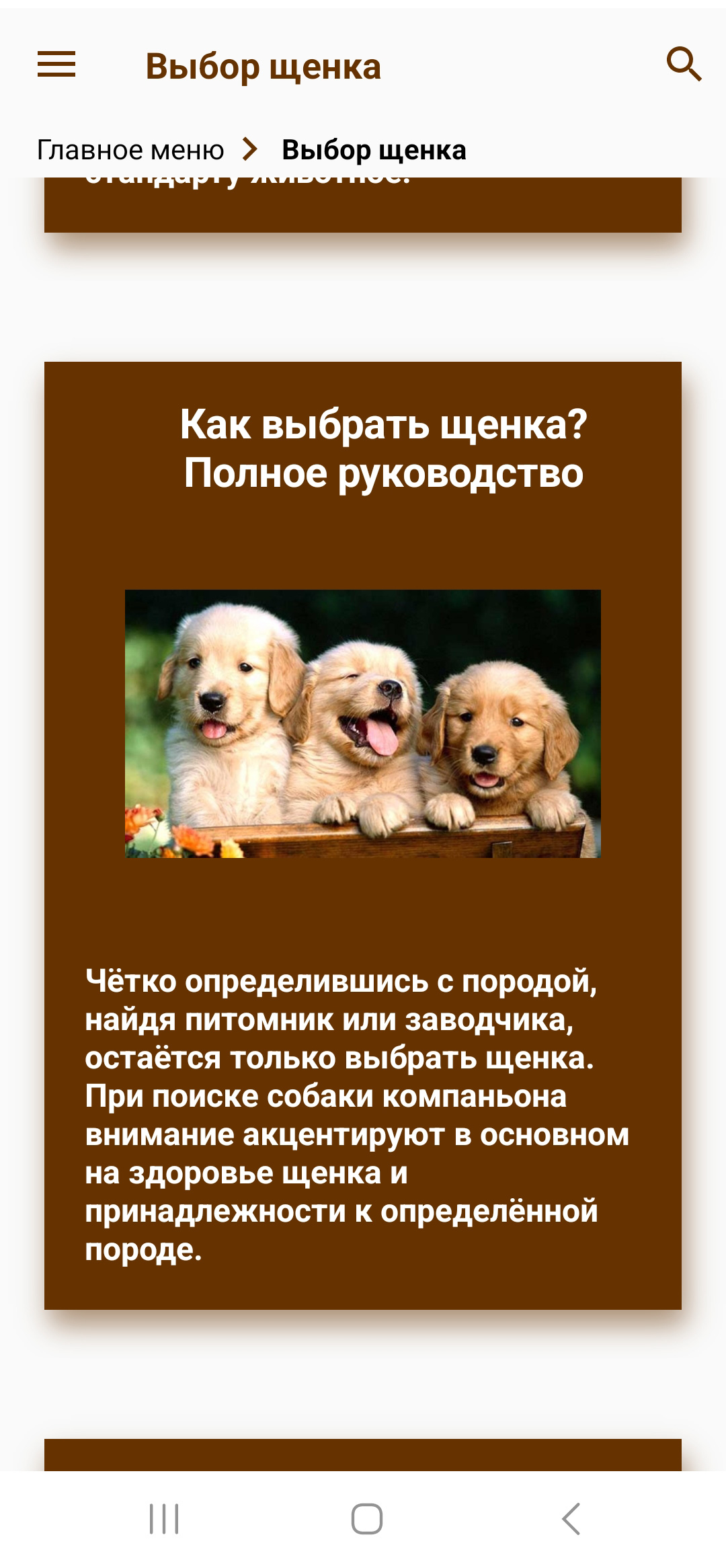 Выбор щенка